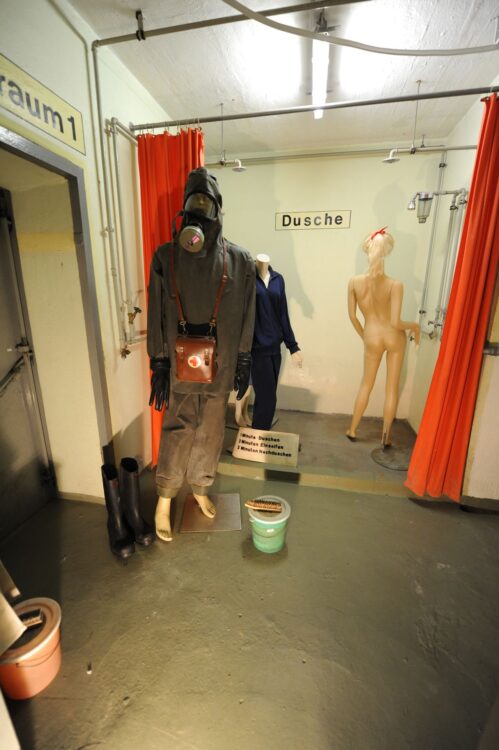 Die Ausstellung im Bunkers legt den Themenschwerpunkt auf den Kalten Krieg. Wie wäre es bei einem Alarm bis Ende der 80er Jahre gewesen? Wie wären die Menschen während ihres Aufenthalts im Bunker versorgt worden? Woher kommt das Wasser? Aber auch die Zeit nach dem 2. Weltkrieg mit der damaligen Wohnungsnot aufgrund von Flüchtlingen und Zerstörung der Stadt ist bei dieser Ausstellung thematisiert.